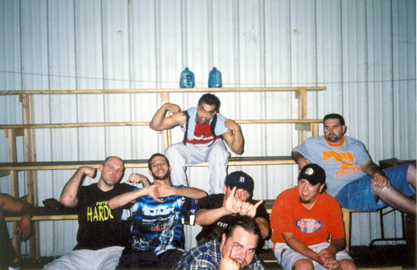 A BSW started out in Winchester, VA in the storage shed behind Chedda's house. He called it the Bike Shop. Chedda and Andy would go at it eye for eye type of shit untill one of them tap. There was many nights where Andy and Chedda would take turns powerbombing each other through unbreakable boards and glass tables. Chedda decided to have the first ever event at his house on jan 2/00. The event was a good show with the debut of Cide, Squeak D, And Jaz E. Dangerously. After many backyard spots and brutal mispots Cide and Chedda contacted this guy that calls himself Grandpa. He said he was down and we went to Radford, VA to get some footage. After many spots and bumbs, Grandpa decided to make a ring inside his 2nd story apartment. Jaz and I left home and moved to Radford. GPA made the ring and we had our first of Five events called the Midnight Massacre Series. Please look at the pictures for a taste of what went down indide the Radford Arena!